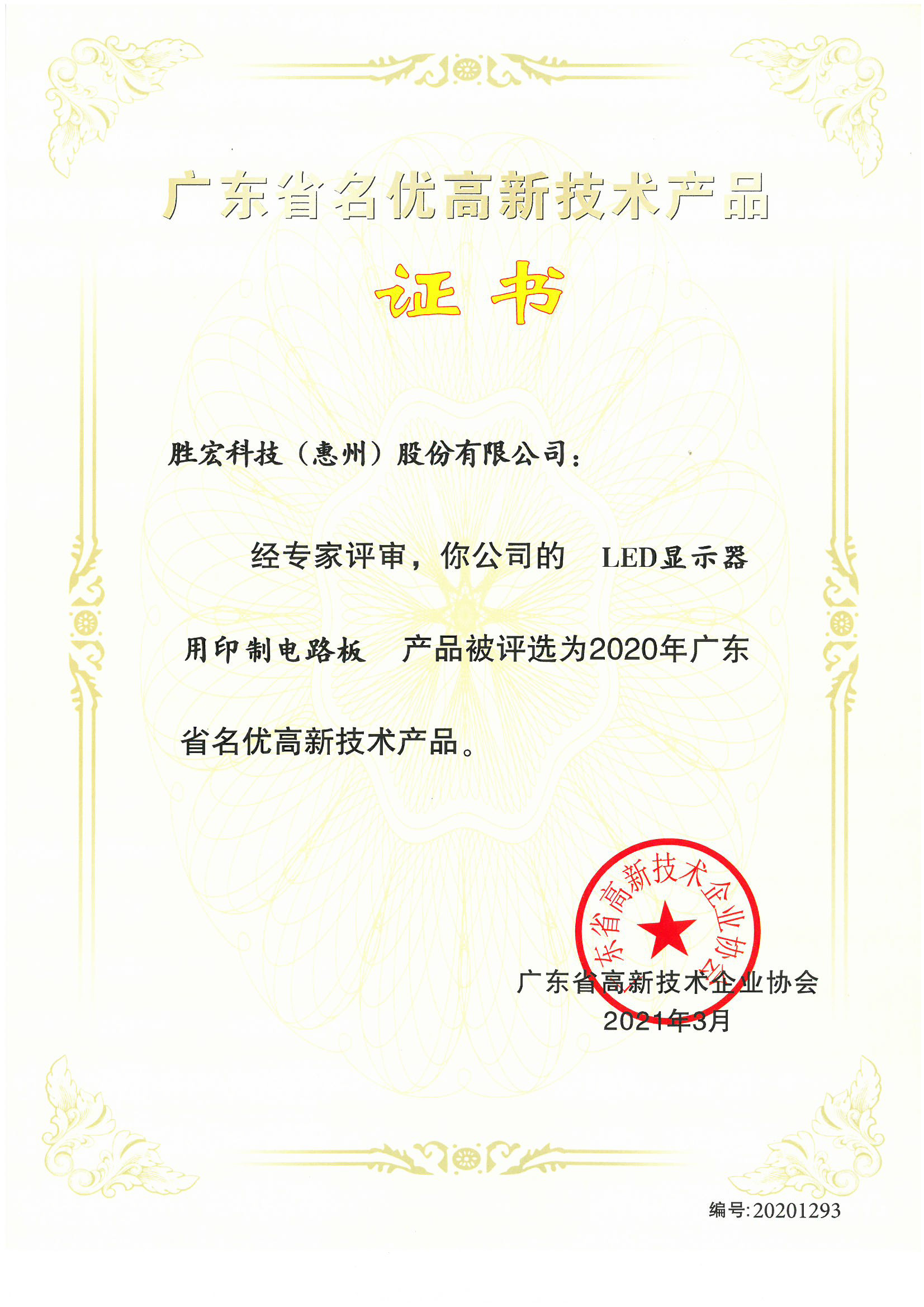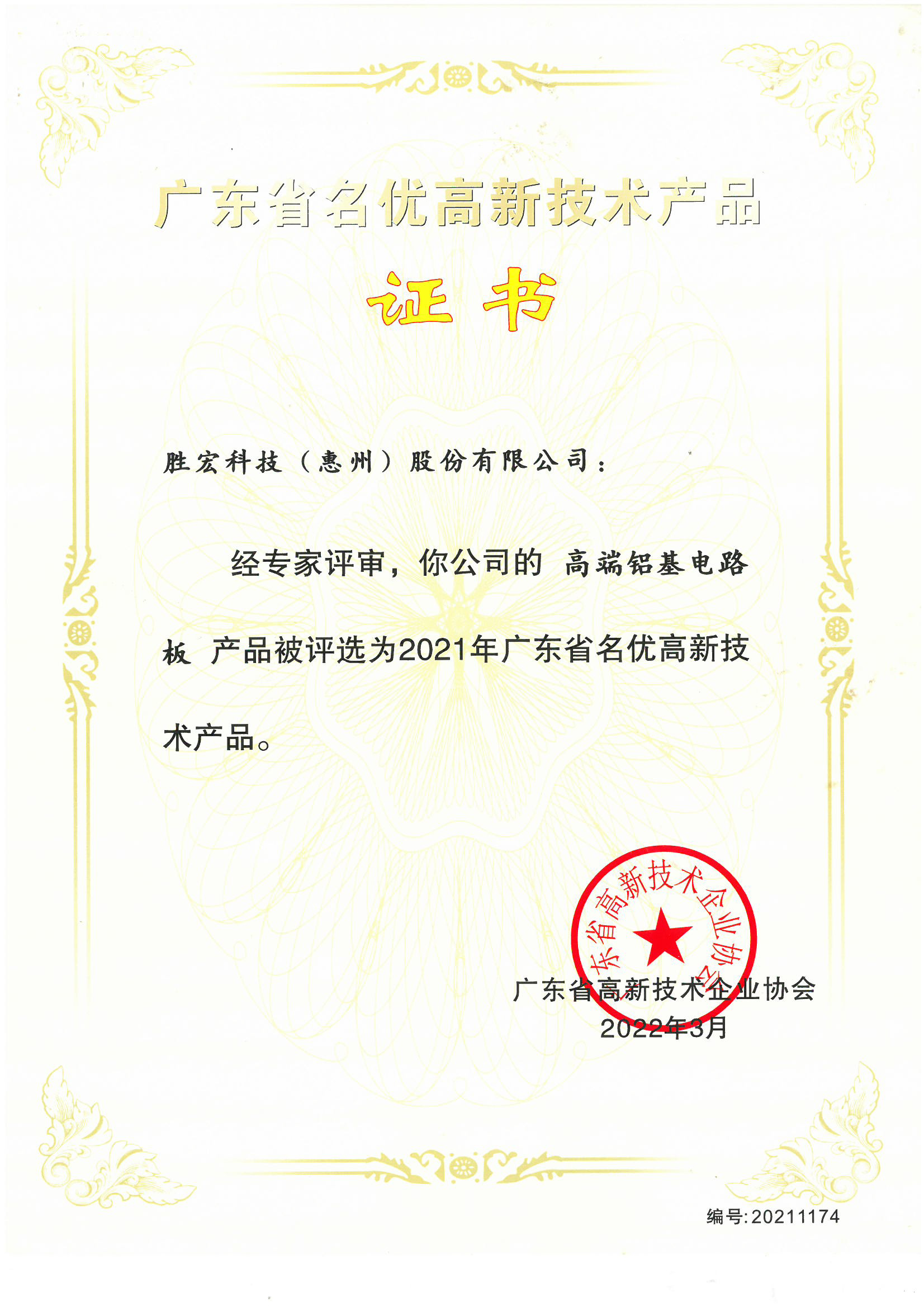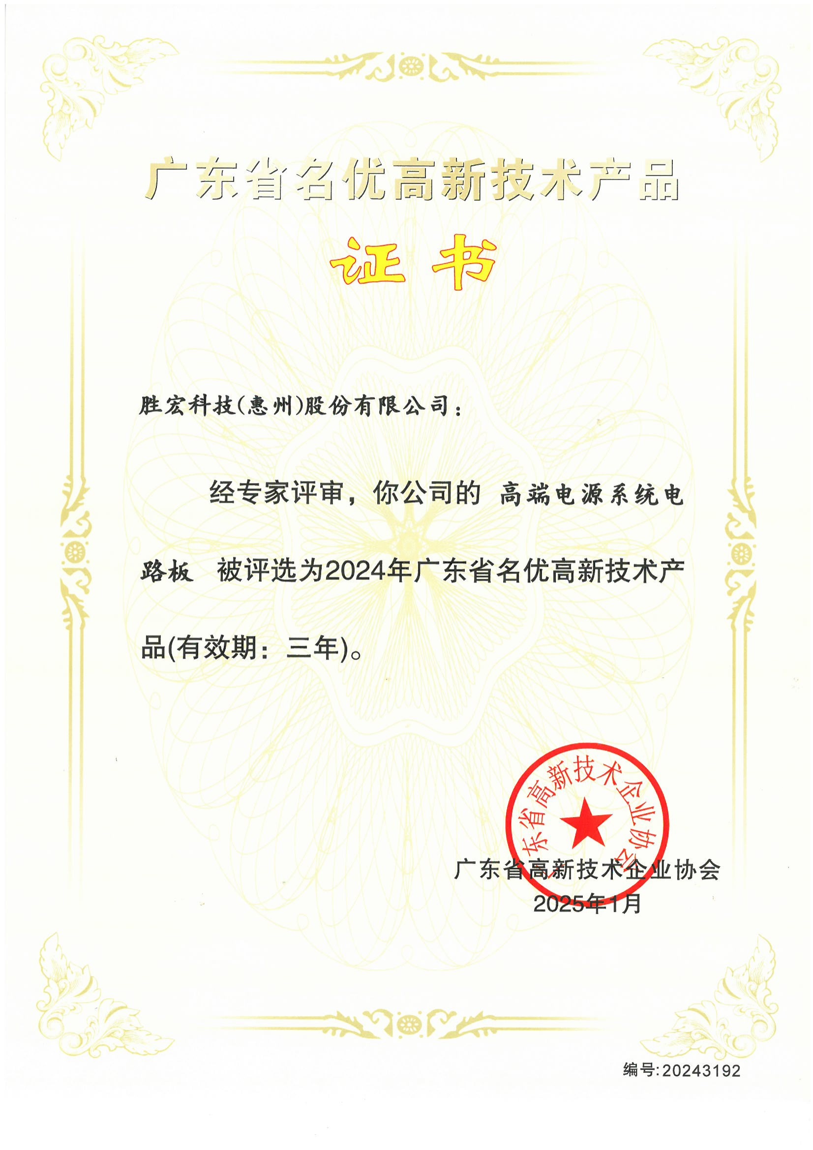 “高频HDI埋嵌铜块电路板”名优高新技术产品证书